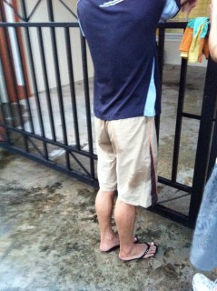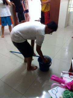 But when everybody came out, the was another commotion going on at the car porch. Peter who is having his birthday 1 day later than me got some ‘sprinkling’ water. Pails of water were ready to ‘baptized’ him. He totally caught off guard. Then the whole scene went outside. Not bad. He’s the only one couldn’t come inside the house as he was all drenched. Mike came in during the second half of the commotion since the door was closed to ensure that Peter doesn’t come in. Mike with wet, dirty feet walked in to the premise and end up doing cleaning punishment.