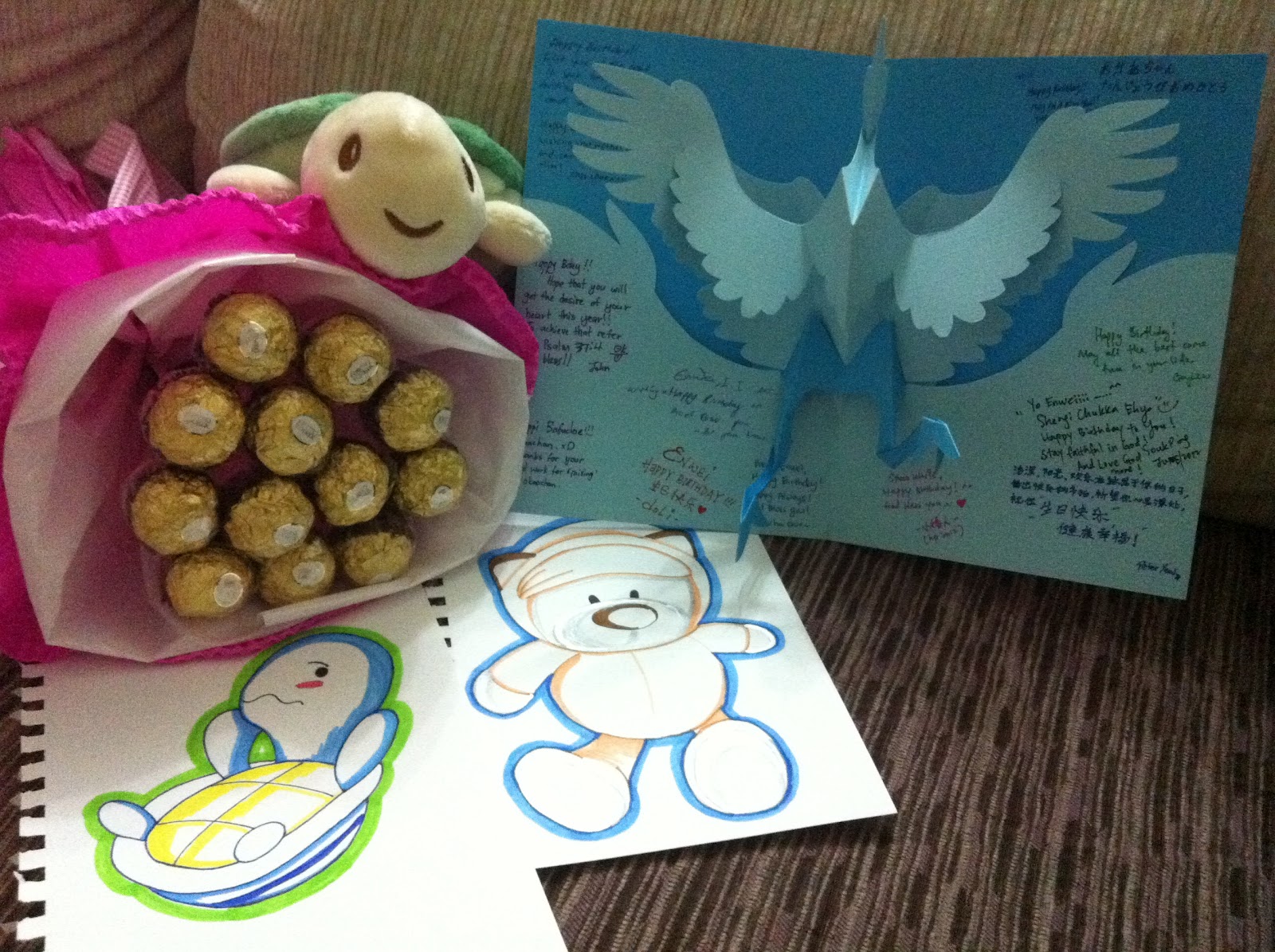 Thank you all for preparing this surprise and getting all the things for me. I really like the Ferrero Rocher bouquet as well as my lovely ka-ping!’s portrait. Cuteness overload.