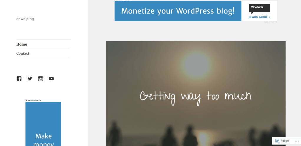 I was like, what a minute. Didn’t I just renew or paid for some subscription this year? I remembered that I paid for a domain renewal. After checking here and there, up and down, I read that there’s a separation of renewal for domain and WordPress’ facilities. Did I just renewed for the facilities? If so, why then the use of my previous template has changed to a FREE template. Anyhow, changing layout and looks again. I supposed this is a sign that I should be uploading new content more frequently.